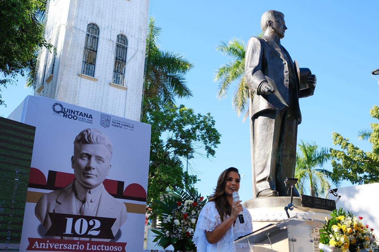 Pero dejó en claro que Carrillo Puerto no caminó solo, sino contó con el respaldo en unidad de su gabinete y del pueblo. “Hoy venimos a recordar ese legado, hoy venimos a hacer visibles esa transformación que él logró, compartiendo sus objetivos de justicia social, de equidad de género y de bienestar; no podemos perder jamás ese rumbo”, dijo.