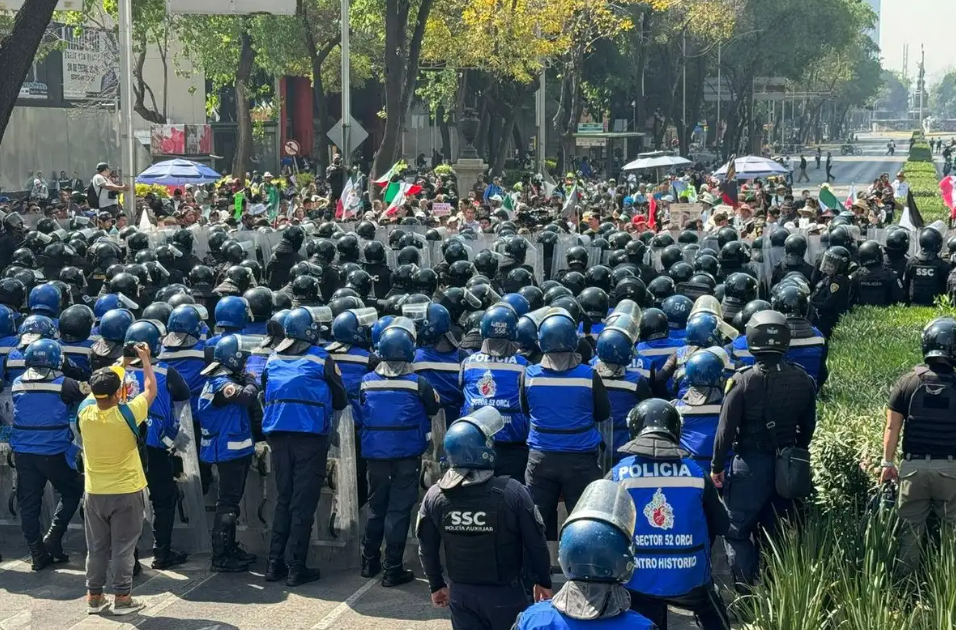 Ya en la calle 5 de Mayo, a la altura de Palma, otra línea de policías les cerró de nuevo la ruta hacia el Zócalo. Con gritos de “¡Viva México!” y consignas contra Morena, insistieron en que se les permitiera el paso. La protesta se mantuvo pacífica.