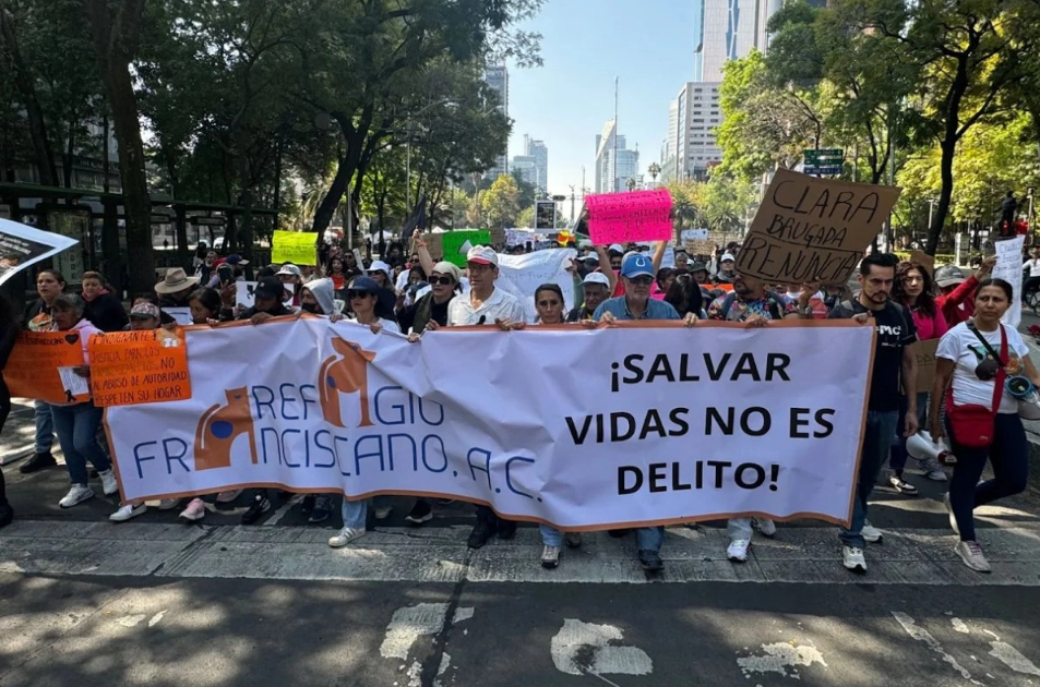 Ciudad de México.— Integrantes del Refugio Franciscano, activistas en defensa de los derechos de los animales y ciudadanos de distintos puntos del país se movilizaron este fin de semana sobre Paseo de la Reforma para exigir la restitución de más de 900 animales retirados del albergue ubicado en la carretera México-Toluca, en la alcaldía Cuajimalpa.