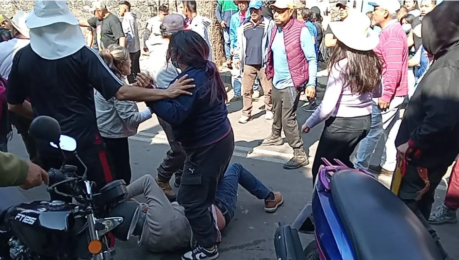 En los alrededores de la plaza del pueblo se registraron empujones, gritos y el uso de gas pimienta cuando representantes de los pueblos originarios intentaron ingresar al recinto. Entre consignas como “Fuera Linares”, “Vendidos” y “No al Cablebús”, los manifestantes trataron de retirar las vallas colocadas para impedir el acceso, mientras que al interior del espacio se realizaba la votación con la participación de alrededor de un centenar de personas.