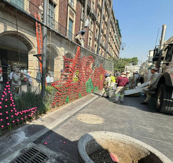 Ciudad de México.— Personal de la Secretaría de Obras y Servicios inició la colocación del primer adorno monumental que decorará el Zócalo capitalino durante la temporada navideña y de Fin de Año. El mosaico, ubicado frente al edificio de los Arcos, marca el arranque formal de la intervención festiva en el corazón del Centro Histórico.