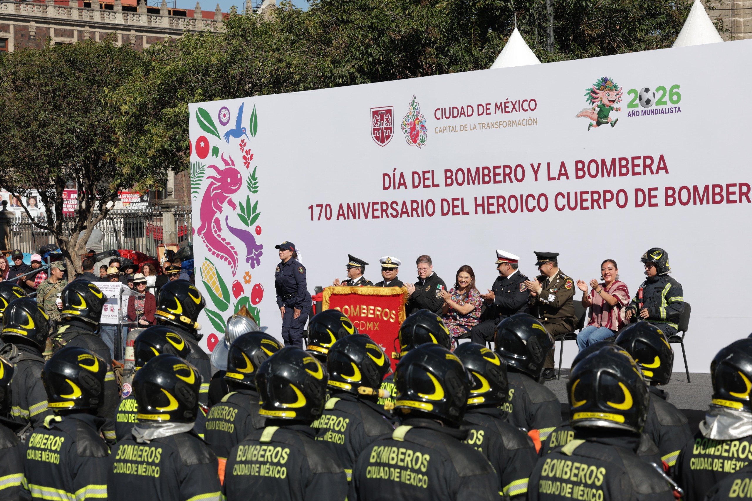Durante el evento, realizado en la Plaza de la Constitución, la mandataria capitalina resaltó que las bomberas y bomberos encarnan la primera respuesta ante las emergencias, el rescate a las personas lesionadas y también para la extinción de incendios.