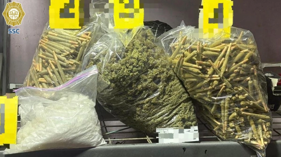 Durante la primera diligencia, se localizaron documentos diversos, así como paquetes de marihuana en diferentes presentaciones. En una segunda inspección, se aseguraron dosis de droga sintética conocida como “crystal”, además de más de mil cigarrillos elaborados con marihuana y material para su consumo. Finalmente, en el tercer inmueble se encontraron más cantidades de esta hierba almacenadas en recipientes y contenedores.