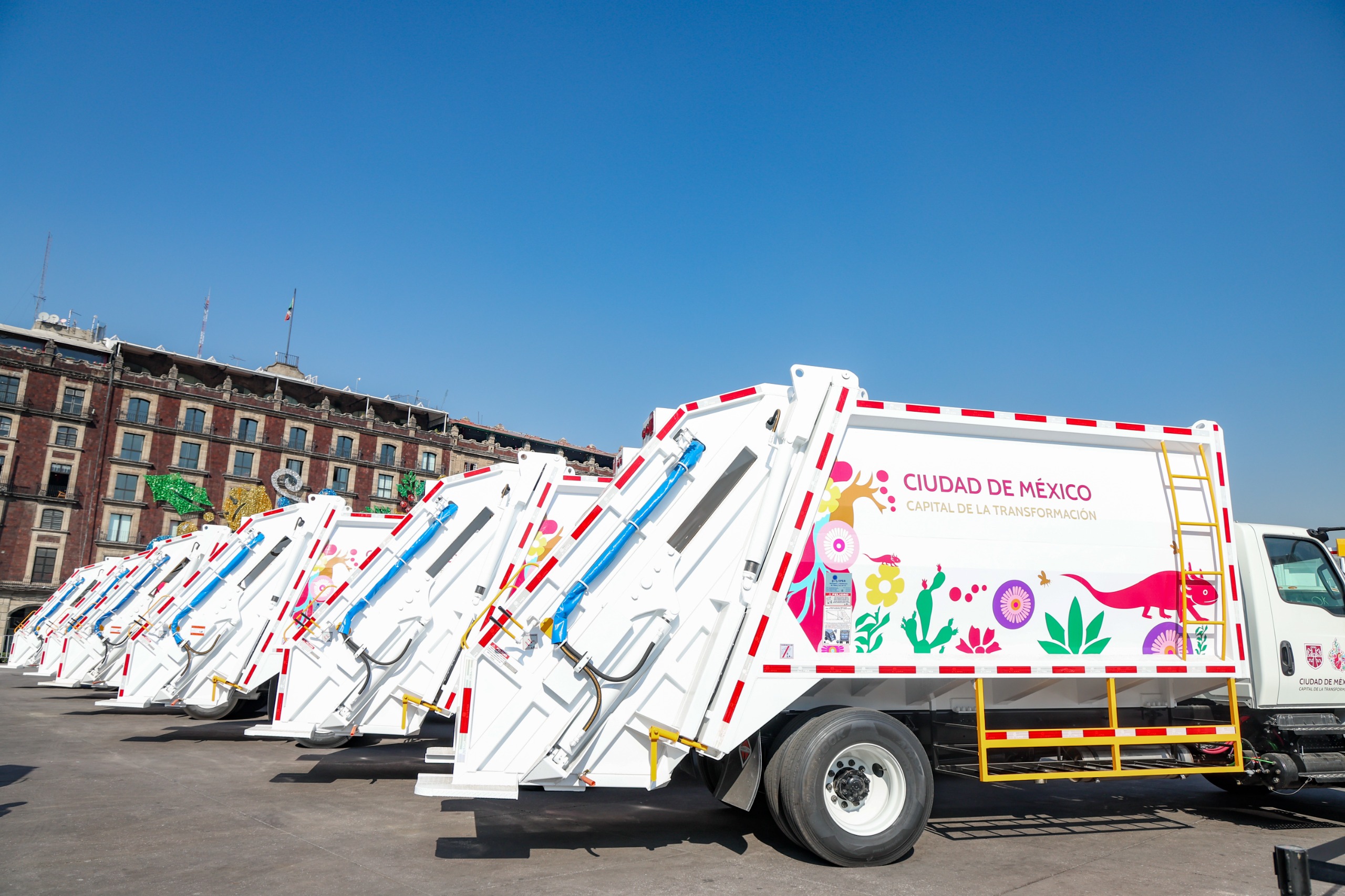 La Jefa de Gobierno, Clara Brugada Molina, entregó 50 camiones recolectores de residuos, con una inversión cercana a los 200 millones de pesos, con el fin de cumplir el compromiso realizado desde su primer día de administración, el cual consiste en aprovechar el 50 por ciento de residuos producidos para 2030, además de otorgar un vehículo nuevo por cada uno adquirido por las alcaldías.
