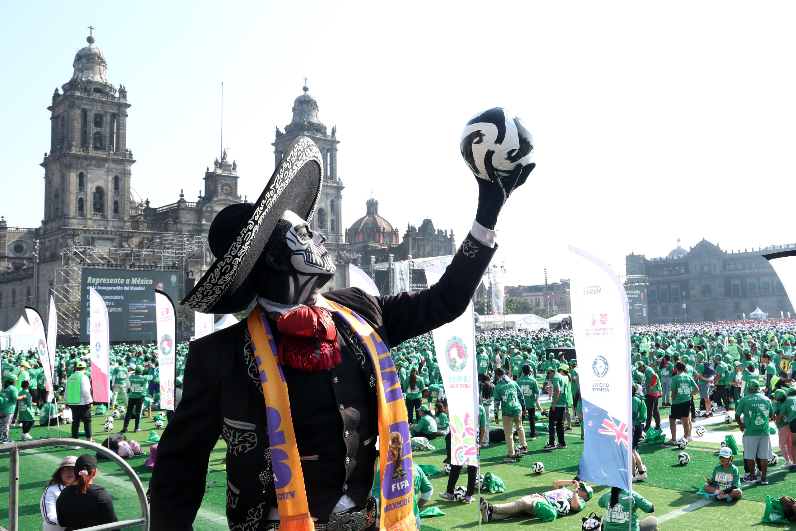 Con la participación histórica de más de 9 mil 500 personas, y en medio de un ambiente festivo y de paz, México batió el Récord Guinness al realizar en la Plaza de la Constitución la clase de fútbol más grande del mundo, como parte de las actividades de promoción para llevar a cabo un Mundial social rumbo a la celebración de la Copa de Futbol FIFA 2026.