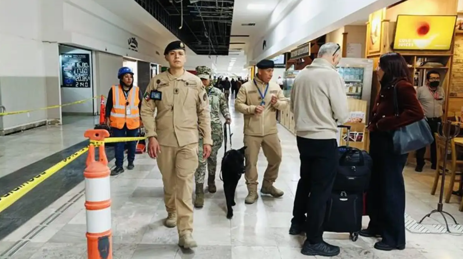 En la terminal aérea se desplegó un estado de fuerza cercano a los cinco mil elementos, integrado por personal de la Unidad Naval de Protección Aeroportuaria de la Secretaría de Marina, el Servicio de Protección Federal, la Secretaría de Seguridad Ciudadana capitalina y empresas de seguridad privada. El operativo incluye también binomios caninos.