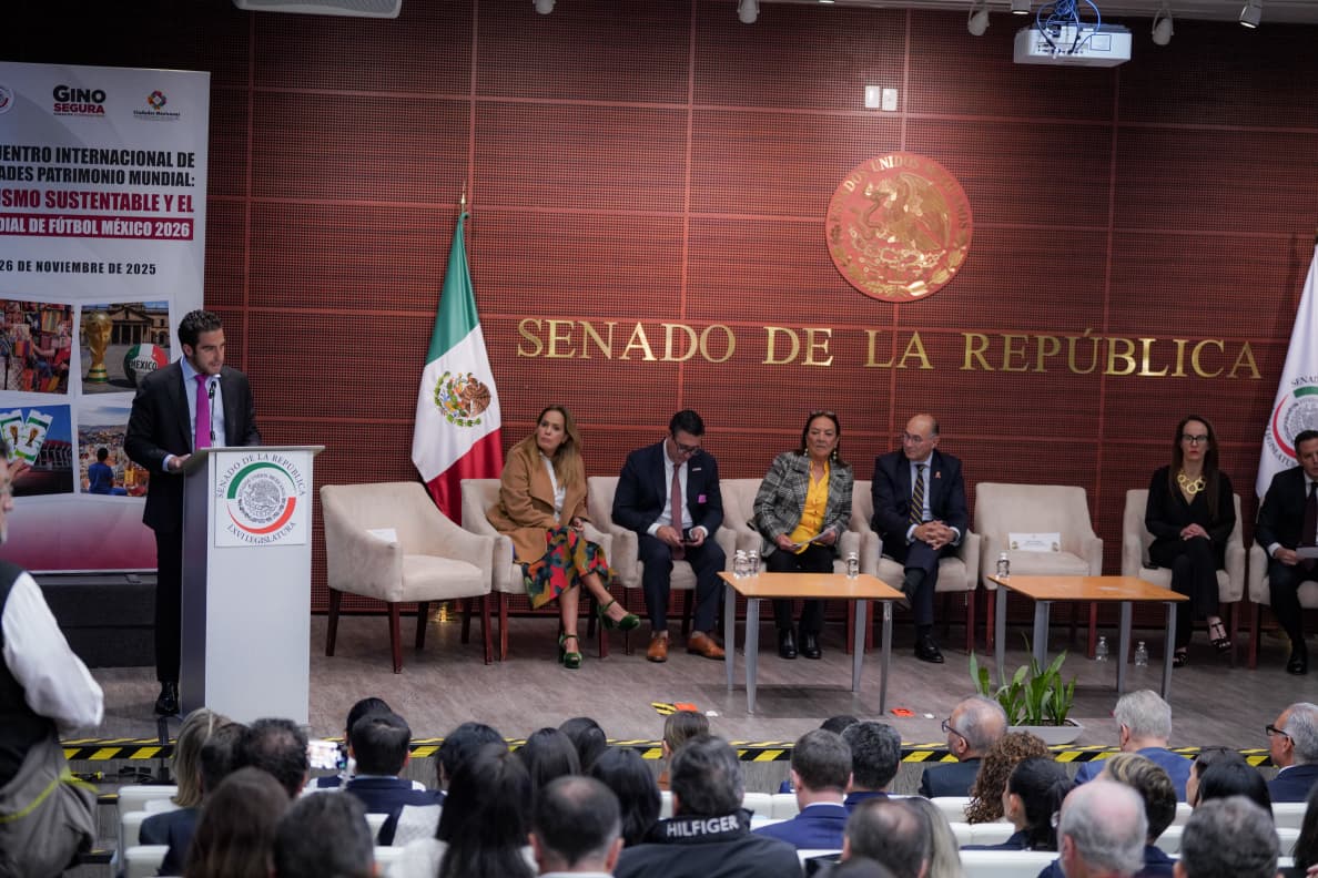 Ciudad de México. – El senador Eugenio “Gino” Segura, presidente de la Comisión de Turismo, encabezó junto con la Asociación Nacional de Ciudades Patrimonio Mundial el Encuentro Internacional de Ciudades Patrimonio Mundial: Turismo Sustentable y el Mundial de Futbol 2026, con el propósito de fortalecer la estrategia de México rumbo al evento deportivo más importante del próximo año.