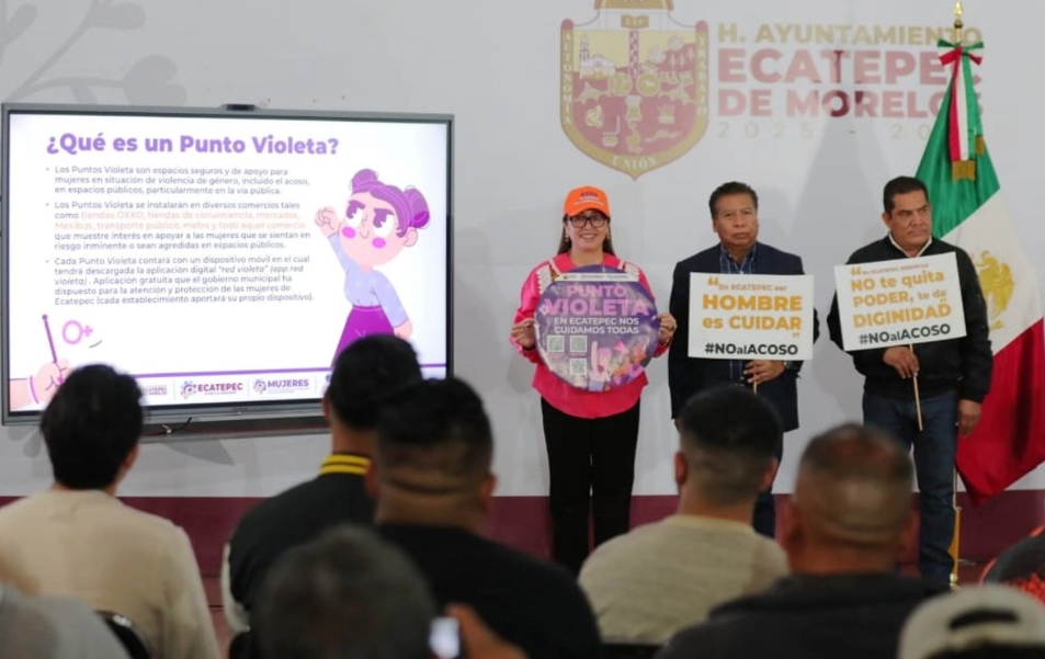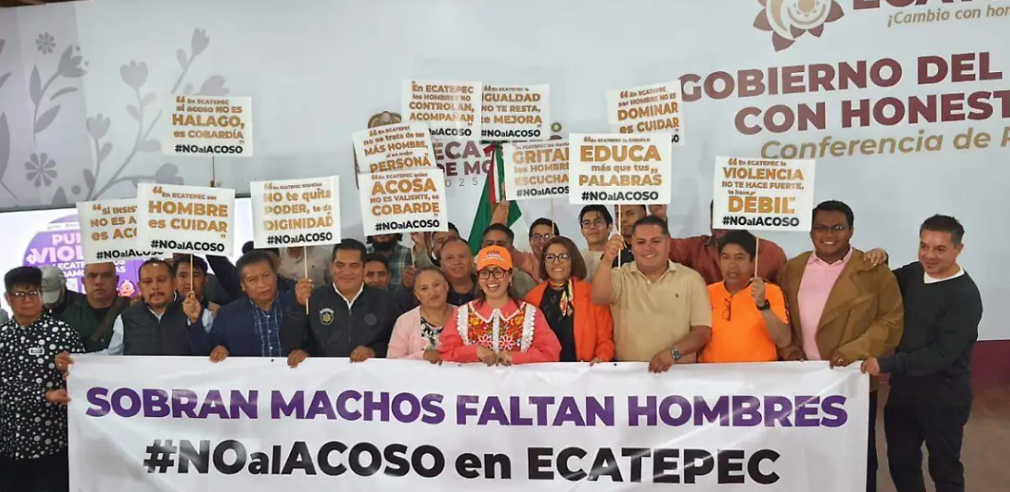 Ecatepec.— En el marco del Día Internacional de la Eliminación de la Violencia contra la Mujer, el gobierno municipal presentó un plan integral para atender y prevenir la violencia de género. El paquete de acciones incluye la campaña de concientización “Sobran machos, faltan hombres”, apoyos económicos de dos mil pesos mensuales para madres adolescentes, y la expansión de la Red Violeta en comercios, transporte público y espacios comunitarios.